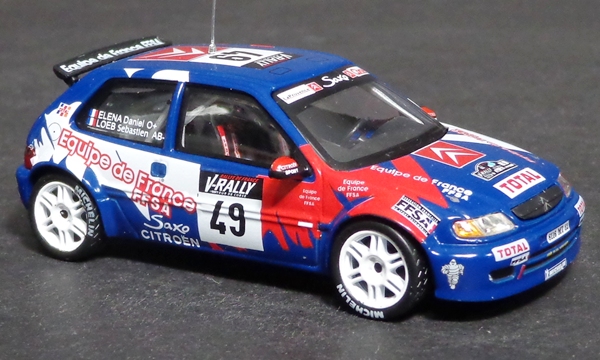 | Citroën Saxo Kit Car Puras / Marti Rallye Monte-Carlo 1999 - DNF Altaya - 1/43 | Citroën Saxo Kit Car Loeb / Elena Tour de Corse 1999 - 19th (Class Winner) Altaya - 1/43 | |||||